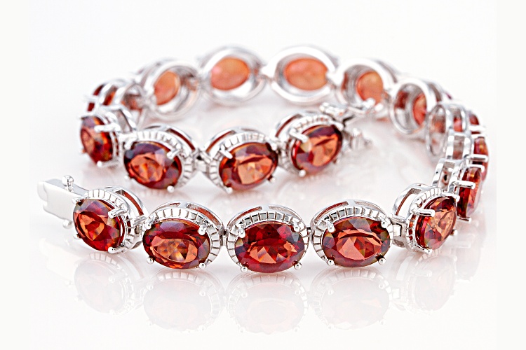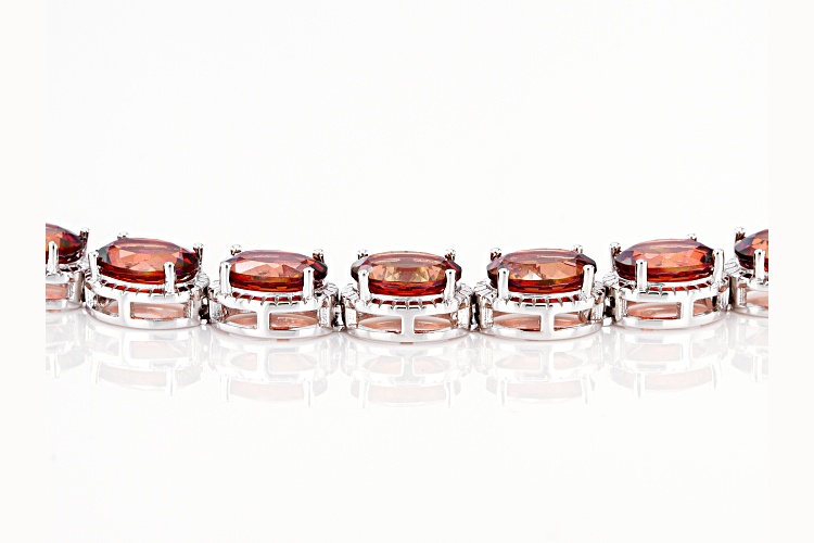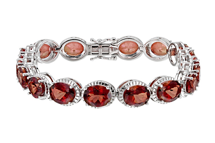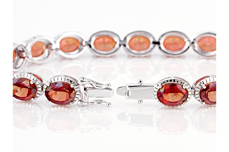 • 15.90ctw Oval Red Labradorite Rhodium Over Sterling Silver Tennis Bracelet - Size 8