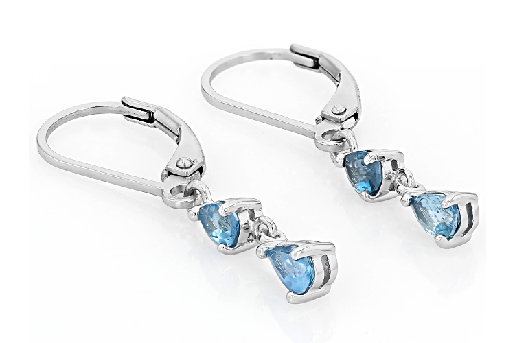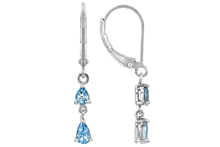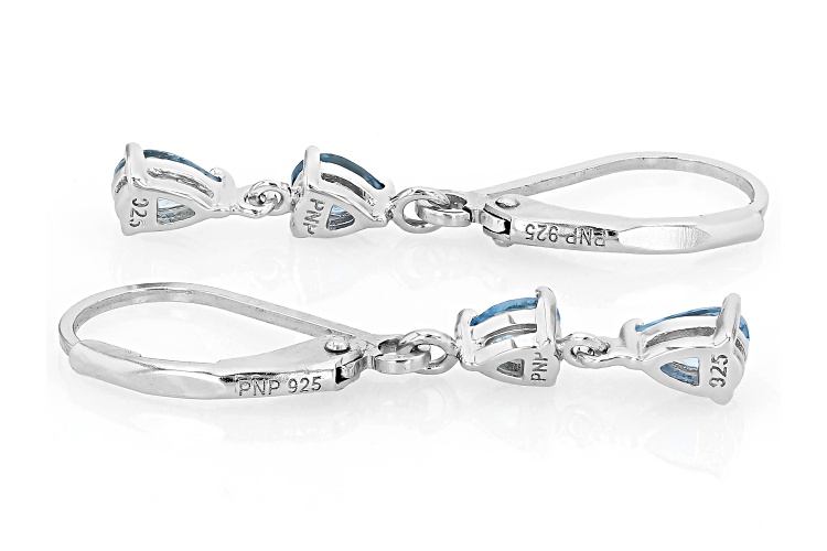 0.50ctw Pear Shape Ofiki Nigerian Aquamarine Rhodium Over Sterling Silver Earrings. Measures Approximately 1.14"L x 0.16"W. Leverbackings