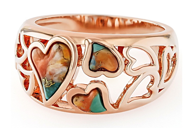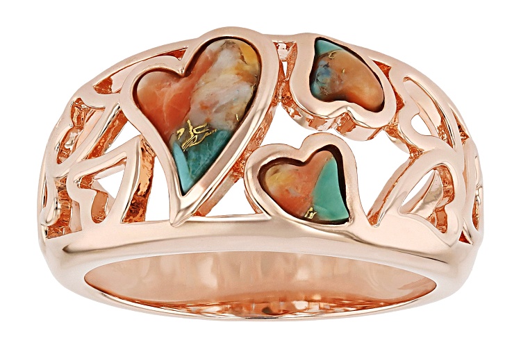 Timna Jewelry Collection™ Blended Spiny Oyster Shell & Turquoise Copper Heart Ring - Size 8