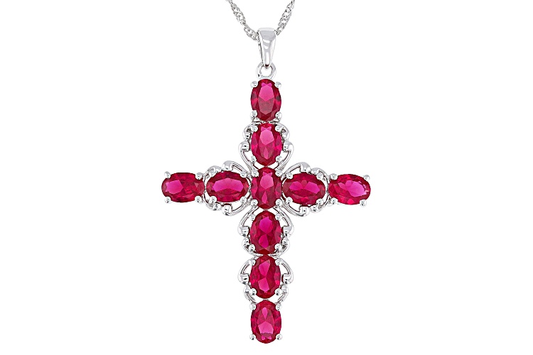 • 7.23ctw Lab Created Ruby Rhodium Over Sterling Silver Pendant with Chain