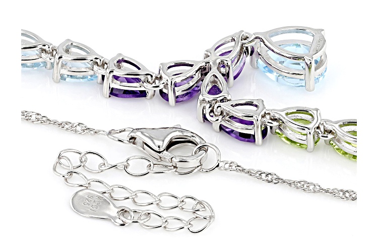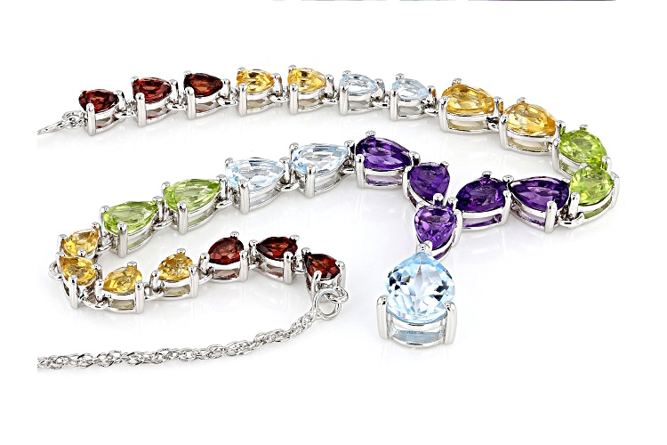 2.90ctw Pear Shape Glacier Topaz™, 1.24ctw Pear Shape Vermelho Garnet™, 1.38ctw Pear Shape Citrine, 1.58ctw Pear Shape Manchurian Peridot™ And 1.48ctw Pear Shape Amethyst Rhodium Over Sterling Silver 18" Necklace. Drop Measures Approximately 0.75"L x 0.27"W. Lobster Claw Clasp. 2" Extender.