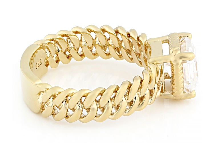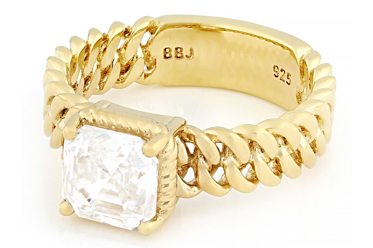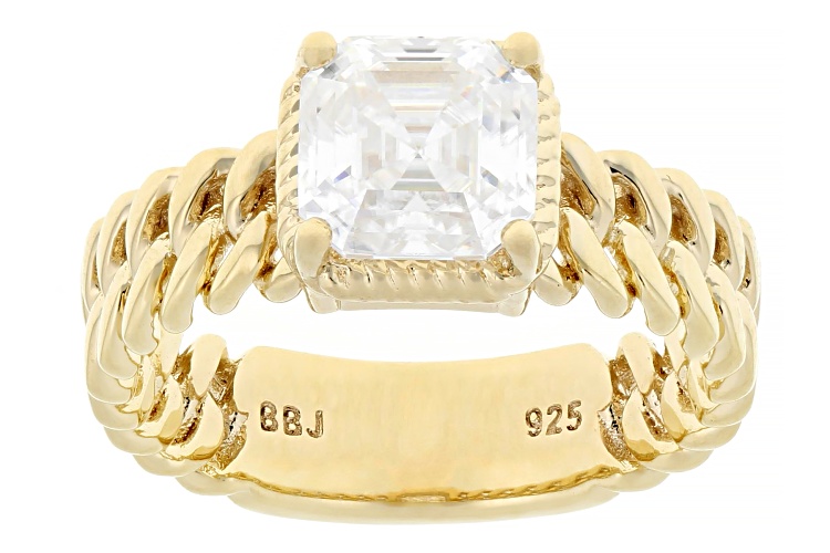 MOISSANITE FIRE® 1.85CT DEW ASSCHER CUT 14K YELLOW GOLD OVER SILVER RING - Size 8