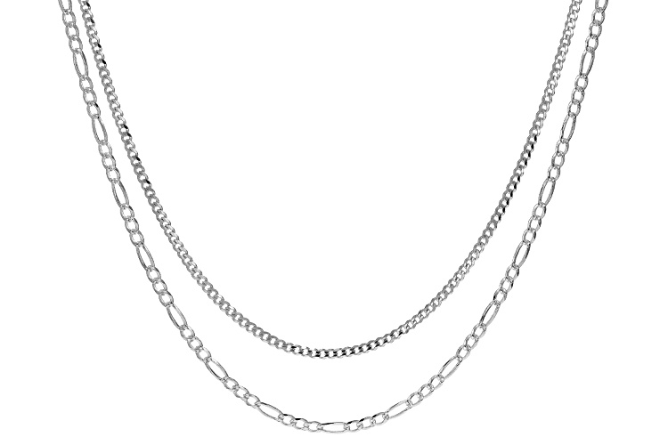 Sterling Silver 3mm Flat Figaro 22" Chain and 2mm Flat Cuban 22" Chain Set of 2