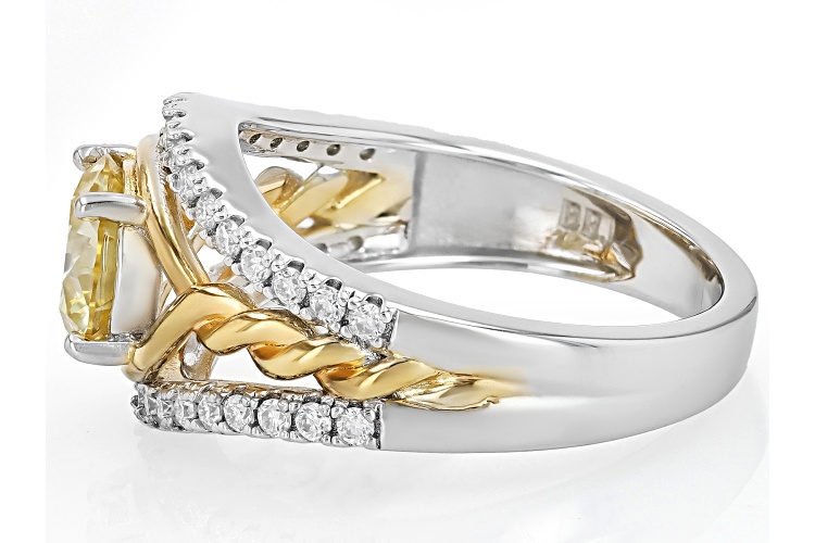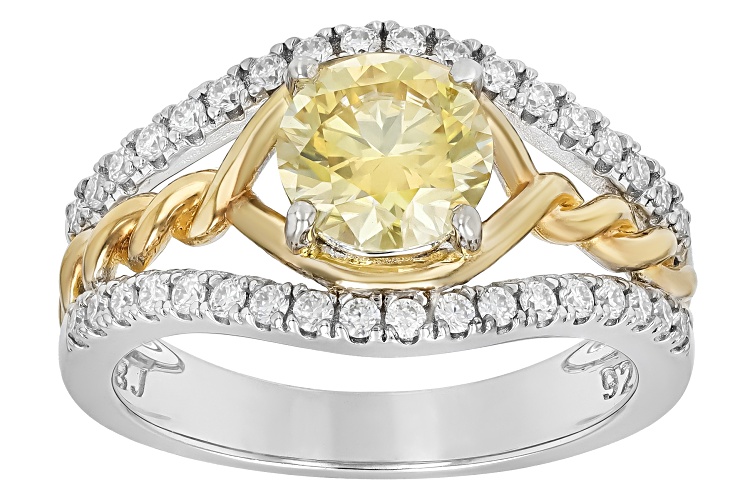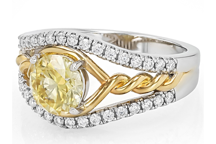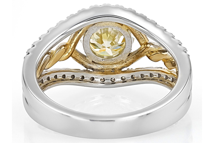 MOISSANITE FIRE® AND YELLOW MOISSANITE 1.56CTW DEW ROUND BRILLIANT PLATINEVE® TWO TONE RING - Size 10