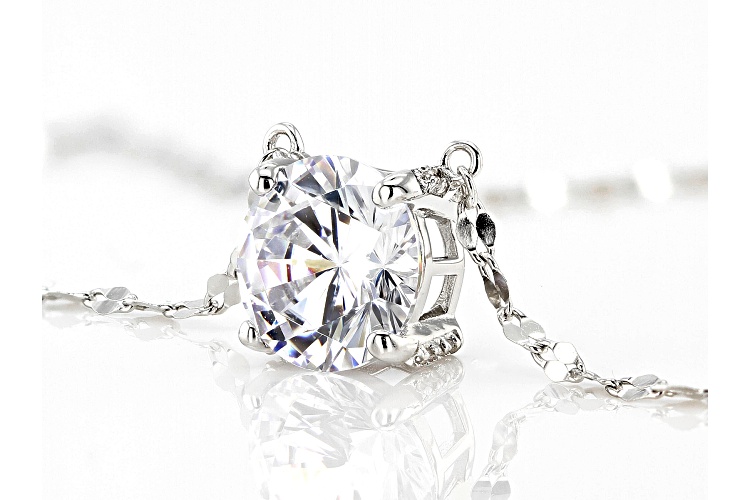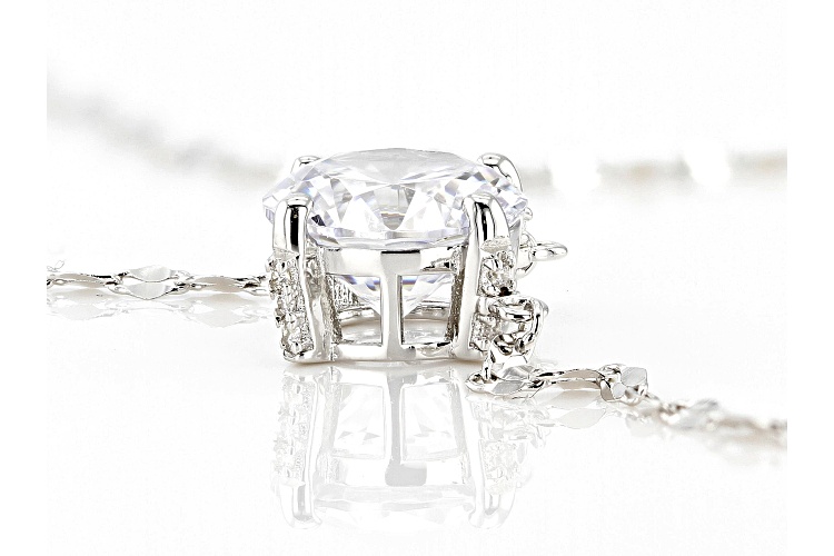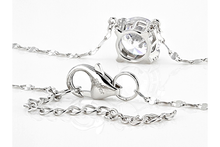 Bella Luce® white diamond simulant 4.55ctw round, platinum over sterling silver 100 facet necklace. Necklace drop measures approximately 0.38" L x 0.38" W. Necklace chain measures approximately 18.00" L x 0.03" W and has a 2" extender and lobster claw clasp closure. The diamond equivalent weight is 2.75ctw.