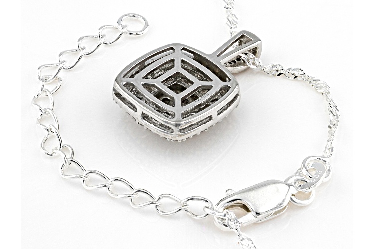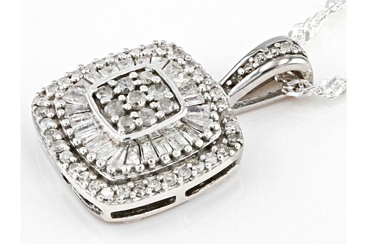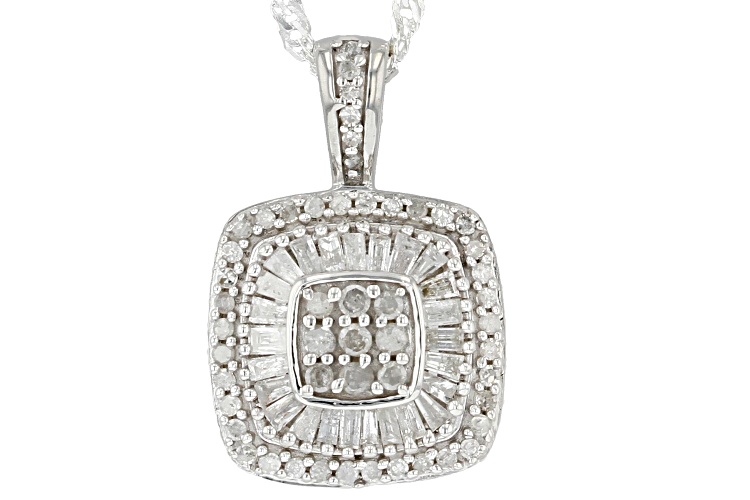 0.60ctw Baguette And Round White Diamond Rhodium Over Sterling Silver Halo Pendant With 18" Chain