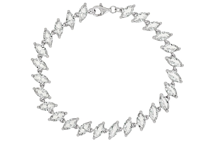 14.14ctw Marquise Lab Created White Sapphire Rhodium Over Sterling Silver Bracelet. Measures Approximately 0.35"W. Lobster Claw Clasp.