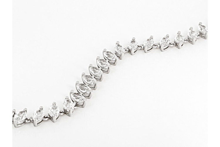 14.14ctw Marquise Lab Created White Sapphire Rhodium Over Sterling Silver Bracelet - Size 8