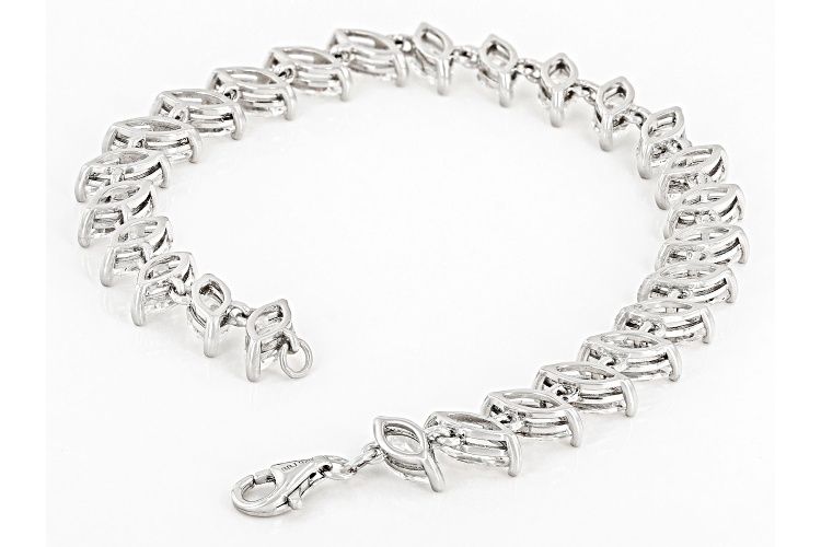 • 14.14ctw Marquise Lab Created White Sapphire Rhodium Over Sterling Silver Bracelet - Size 8