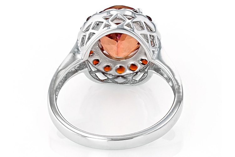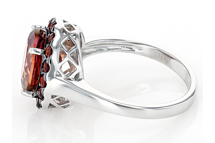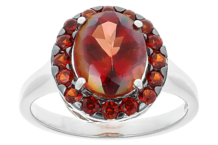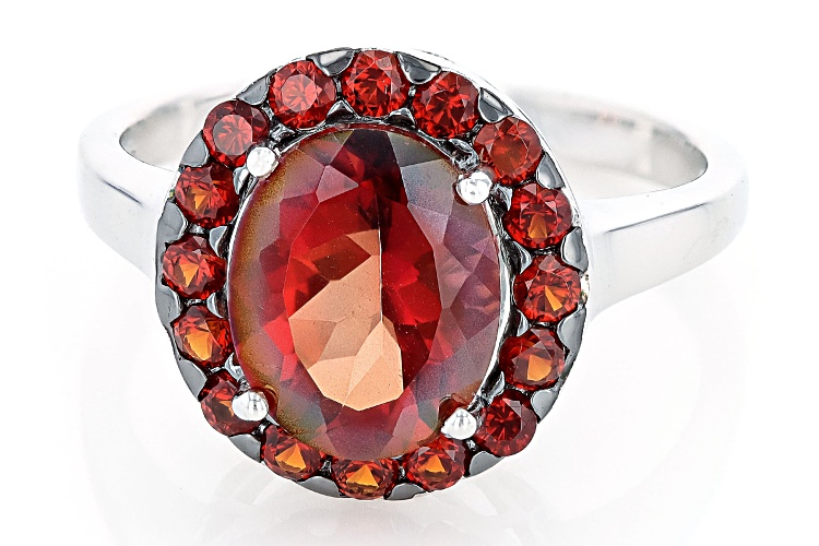 1.96ct Oval Red Labradorite With 0.64ctw Round Vermelho Garnet™ Rhodium Over Silver Ring - Size 8