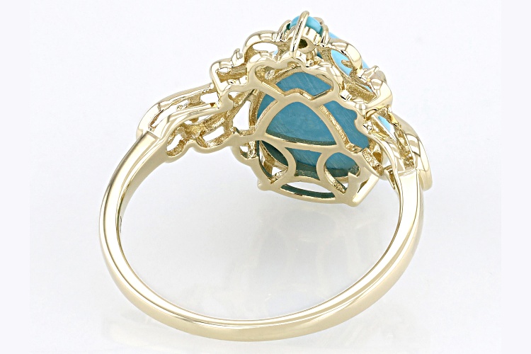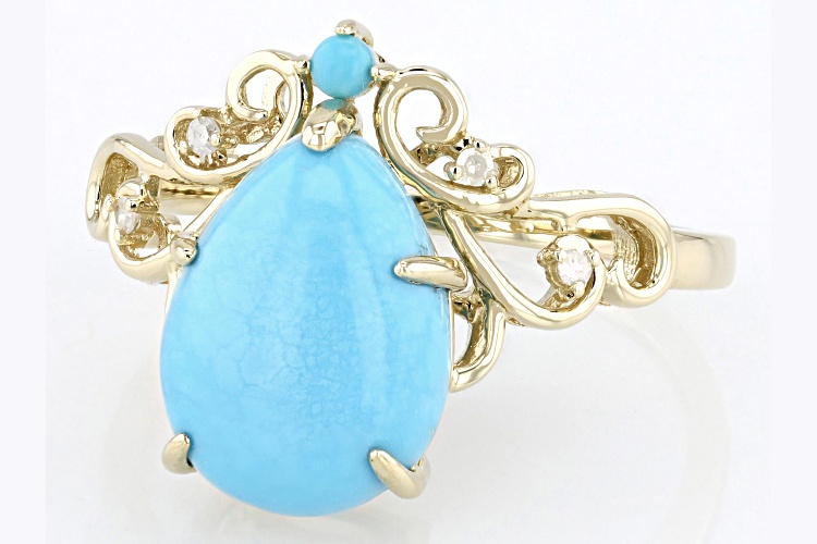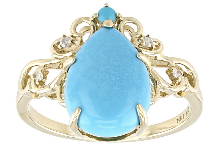 12x9mm Pear And Round 2mm Blue Sleeping Beauty Turquoise With 0.03ctw White Diamond Accent 14k Yellow Gold Ring. Measures Approximately 0.60"L x 0.74"W.