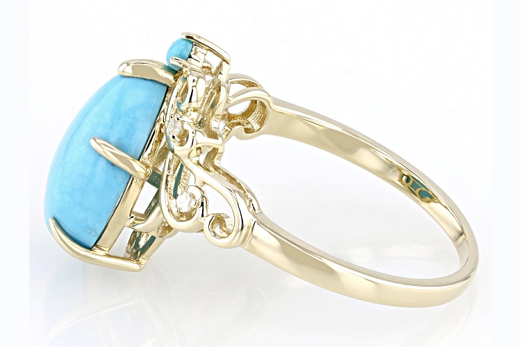 • 12x9mm, 2mm Blue Sleeping Beauty Turquoise With 0.03ctw White Diamond Accent 14k Yellow Gold Ring - Size 7