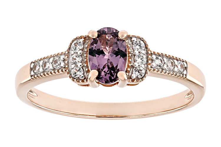 0.42ct Oval Purple Spinel With 0.11ctw Round White Zircon 10k Rose Gold Ring. Measures Approximately 0.64"L x 0.21"W. Accent Stones Primarily Zircon.