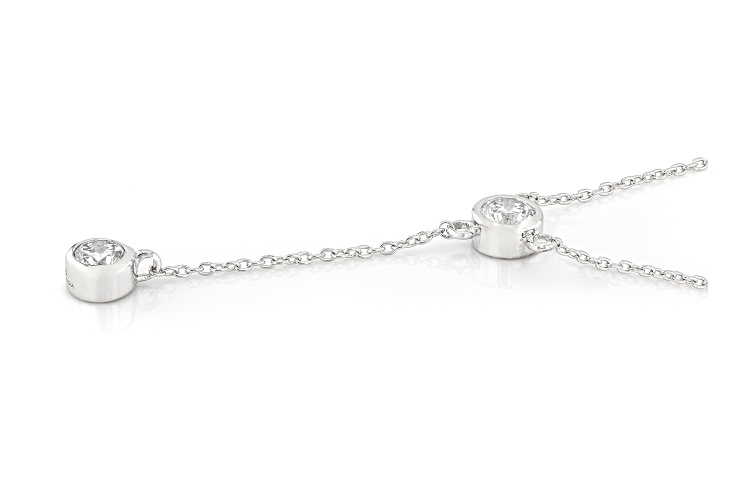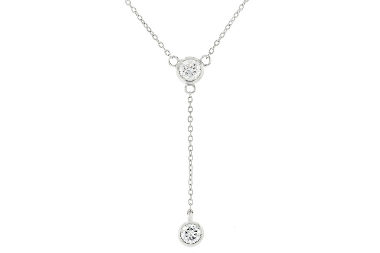 Prazana® Lab-Grown Diamonds 0.80ctw round white lab-grown diamond, rhodium over sterling silver Y-drop necklace. Drop measures approximately 1 & 9/16"L x 1/8"W. Necklace has a cable chain with a 2" extender and a lobster claw clasp. H color, SI clarity minimum.