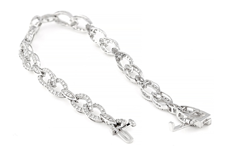 Prazana® Lab-Grown Diamonds 1.50ctw round white lab-grown diamond, rhodium over sterling silver tennis bracelet with hidden box clasp with safety bar. Measures approximately 7 1/4"L x 1/4"W. H color, SI clarity minimum.