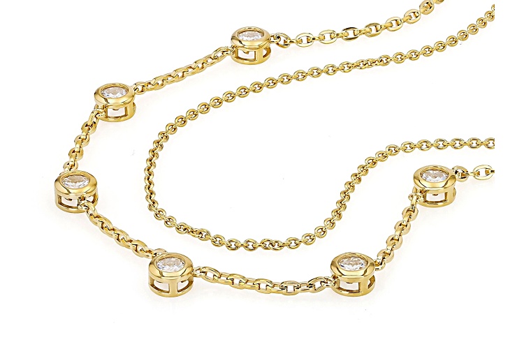 MOISSANITE FIRE® 3.50CTW DEW ROUND BRILLIANT 14K YELLOW GOLD OVER SILVER LAYERED NECKLACE