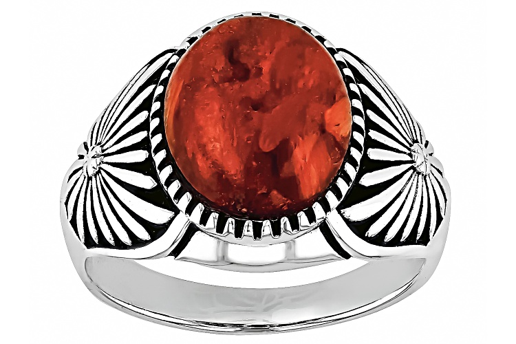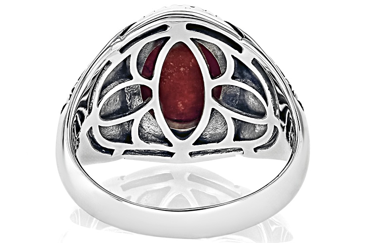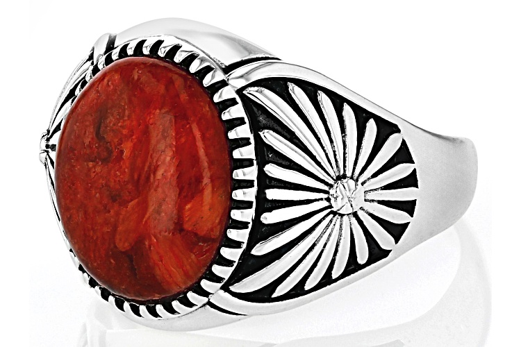• Southwest Style by JTV™ 14x11mm Oval Red Sponge Coral Sterling Silver Men's Ring - Size 11