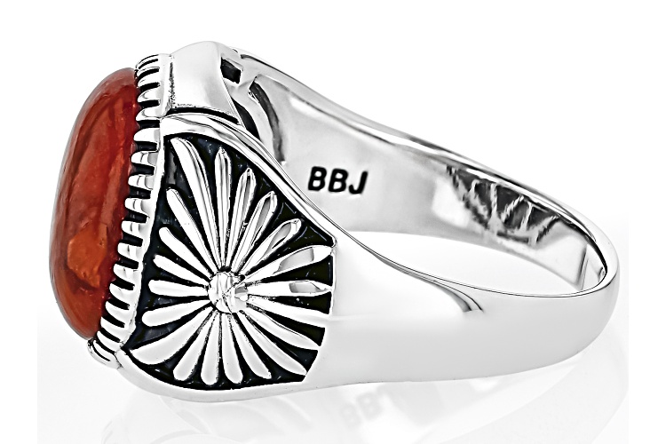 Southwest Style by JTV™ 14x11mm Oval Red Sponge Coral Sterling Silver Men's Ring - Size 11