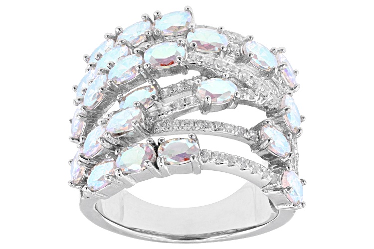 • Pre-Owned Bella Luce® 6.12ctw Aurora Borealis And White Diamond Simulants Rhodium Over Sterling Silv - Size 8